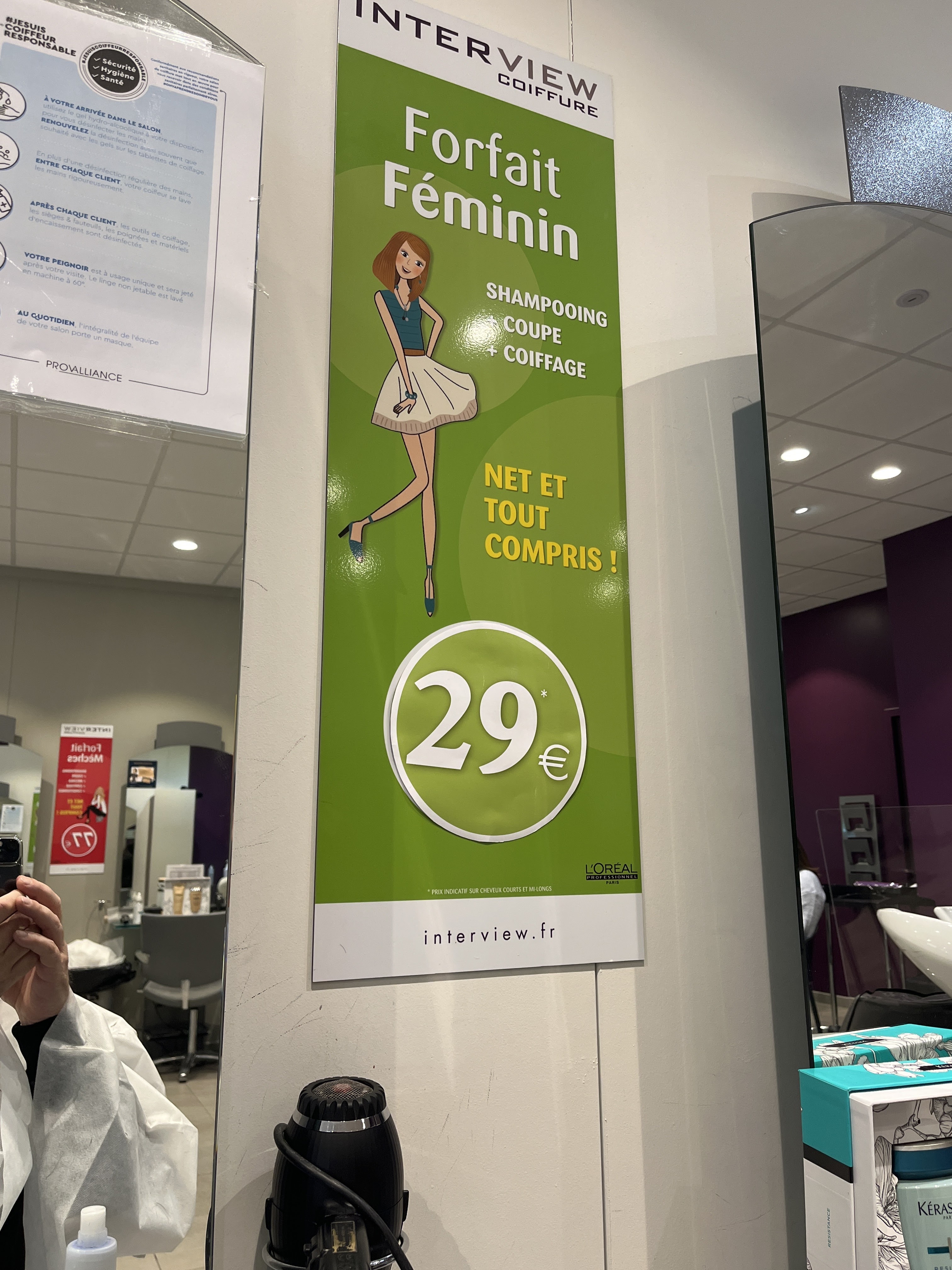 Contente de ma coiffeuse mais salon vraiment degueu ! !! Quand elle a ouvert le tiroir la touffe de poils dedans ma écoeuré ... Les évier pour laver les cheveux j'en parle même pas tu tinstalle ya encore des grand cheveux noirs dans le bacs et des traces de teinture aussi. .. 1 sèche cheveux pour 3 coiffeur. ... et quand le coiffeur da côté fini sa journée même pas un coup de ménage et désinfection sur son plan de travail vraiment écoeurant heureusement que ma coiffeuse était super et à pris le temp de me faire plaisirs et Me d'aire belle parcque c'est vraiment pas clean la dedans!!!